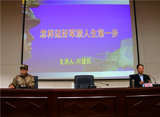 授課中,葉建民教授結(jié)合當(dāng)前國(guó)際國(guó)內(nèi)形勢(shì)和自身經(jīng)歷,深刻剖析了強(qiáng)國(guó)強(qiáng)軍的重要意義。為即將參軍入伍的“準(zhǔn)新兵”,如何端正入伍動(dòng)機(jī)、適應(yīng)部隊(duì)生活、弘揚(yáng)尚武精神、立志軍營(yíng)建功立業(yè),指明了前進(jìn)方向。葉教授整個(gè)授課見(jiàn)解獨(dú)到、分析透徹,語(yǔ)言精彩、內(nèi)涵深刻,讓人深受啟發(fā)、獲益匪淺,授課過(guò)程中多次爆發(fā)熱烈的掌聲。