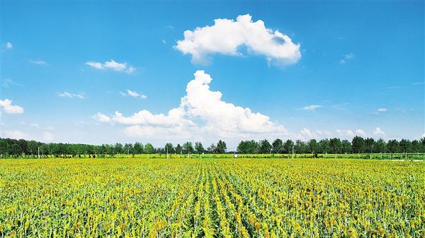 8月17日,扶溝縣藍天白云下的秋季作物生機勃勃,孕育著豐收的希望。黃金峰 攝
